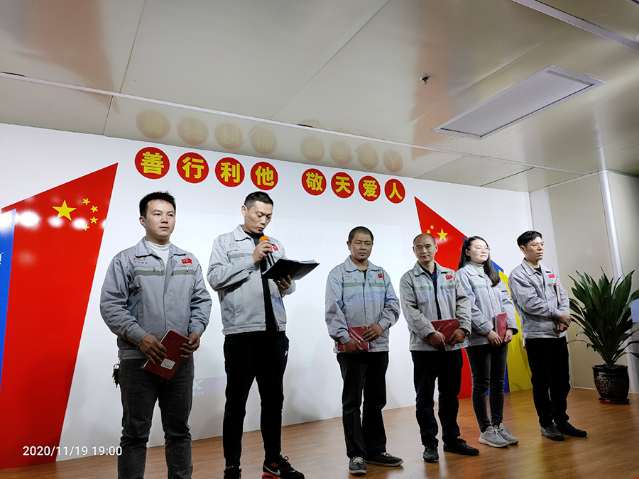 2020年11月19日18點45分,匯利興西南工廠全體員工在匯利興學(xué)校召開10月月度會議,由總經(jīng)辦張琳烯主持。