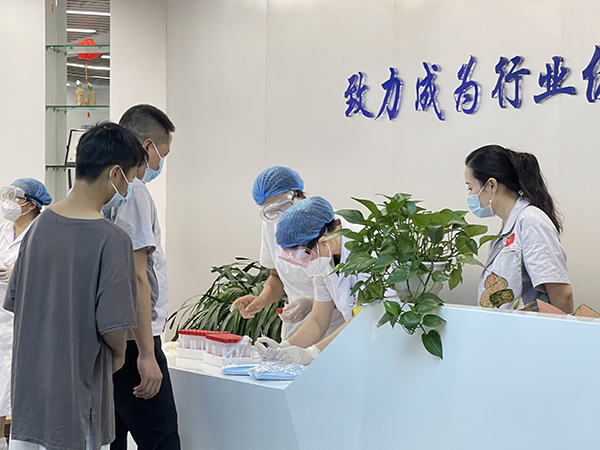 為加強(qiáng)新冠肺炎疫情防控工作 ,有效實(shí)施對(duì)新冠肺炎的預(yù)防、控制工作,保證員工健康安全。匯利興西南工廠積極響應(yīng)國(guó)家防疫號(hào)召,主動(dòng)做好疫情防控工作,于2021年8月7日上午為全體員工開(kāi)展核酸檢測(cè),為全體員工的安全健康加上一層“防護(hù)盾”,確保全體員工都能以健康的身體、積極的心態(tài)投入工作中,進(jìn)一步為疫情防控企業(yè)做好疫情防控榜樣。 疫情防控,人人有責(zé)。為確保疫情防控和安全生產(chǎn)工作兩不誤原則,同時(shí)盡最大努力降低員工外出感染的風(fēng)險(xiǎn),行政部提前與醫(yī)院進(jìn)行溝通銜接,通過(guò)采取醫(yī)院派醫(yī)務(wù)人員到廠區(qū)內(nèi)進(jìn)行采樣的方式,為員工安全健康保駕護(hù)航。 檢測(cè)現(xiàn)場(chǎng),醫(yī)務(wù)人員嚴(yán)格執(zhí)行檢測(cè)流程,對(duì)每一位參檢人員進(jìn)行實(shí)名登記驗(yàn)證,填寫(xiě)樣本采集申請(qǐng)單,發(fā)放檢測(cè)工具。為防止人員扎堆聚集,等候人員都需間隔1米以上,以部門(mén)分批次、分時(shí)段進(jìn)行檢測(cè),并反復(fù)核對(duì)個(gè)人信息并記錄,確保信息準(zhǔn)確無(wú)誤。