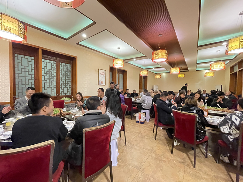 全體員工起立肩并肩,一起唱響“只要我們一起努力,相信我們一定會創(chuàng)造奇跡”,字里行間都激勵著在場每一位員工一定要奮勇前進,歌聲嘹亮,振奮人心! 伴隨時間的推移,也逐漸拉開了會議的下半場,冬天里的第一只羊。公司用最貼心的方式向每一位員工表達著自己的愛,讓大家在寒冷的冬天,不再畏懼寒冷,將暖暖的祝福,送到了大家的眼前,融化在火熱的烤羊里。香味四溢的正宗的草原風(fēng)味烤全羊,經(jīng)過專業(yè)師傅的精心烤制,油汁慢慢的從金黃的羊肉中沁出,羊肉也因為火的炙烤而變的金黃,香氣四溢,讓大家一同體驗了大口吃肉大口喝酒的豪放之情,讓大家感受到舌尖上的美食、味蕾的跳動,并訴說著從舌尖到心尖的蛻變,從走胃到走心的真情交流;大家圍坐在一起大快朵頤,席間談笑風(fēng)生,盡展妙趣,共同舉杯歡慶這美好時刻! 有一種浪漫叫并肩作戰(zhàn),有一種力量叫全力以赴,有一種果敢叫奮不顧身。無論前方等待著什么,我們?nèi)耘f拼搏向上,拿出我們最佳的狀態(tài),永遠(yuǎn)堅定地向目標(biāo)邁進,相信所有堅韌不拔的努力,都會得到勝利的回饋!加油!